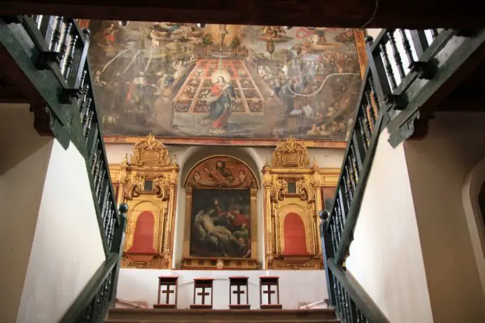 The church is free to enter, and has a large collection of colonial religious paintings as well as beautifully carved cedar choir stalls. To visit the museum there in a small entrance fee, but this includes a tour of the cloisters and high levels of the church. The museum tour isn’t in English, but it’s still worth doing because you’ll see a lot and the views from the bell tower and the church roof are incredible. Back inside there’s an enormous painting – supposedly the largest in South America – of St Francis of Assisi’s family tree (he was the founder of the order). There are also two crypts housing human bones, if that’s your sort of thing.